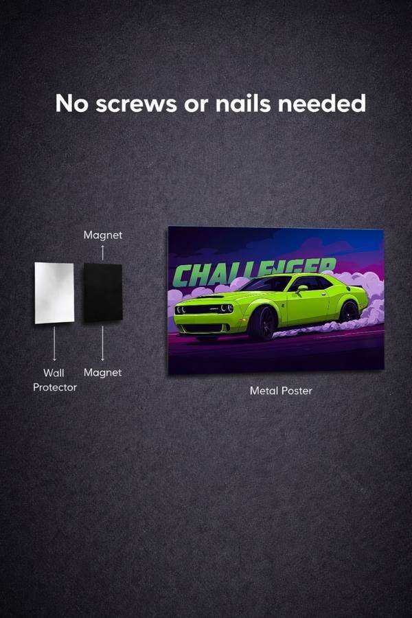 The Dodge Challenger metal poster is premium metal wall art designed to bring bold personality and modern style into your space. Ideal for bedrooms, offices, studios, and gaming setups, this design creates a strong visual impact without overwhelming the room.